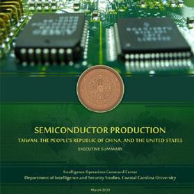The project was inspired by an open call for unclassified research, which was issued in August of 2022 by the Intelligence Analysis Advisor of the NSA’s Office of Academic Engagement. It was the first such call issued since November of 2021, when the Intelligence and Security Studies program at CCU signed an Educational Partnership Agreement with the NSA. The CIB’s Critical Mission Center project was offered the opportunity to select one from a handful of research topics, all of which represent major national security challenges for the United States. The topic selected by the group of 14 senior analysts focused on the production and use of semiconductors. However, the group kept the nature of the project secret until it was able to brief the NSA in late March.